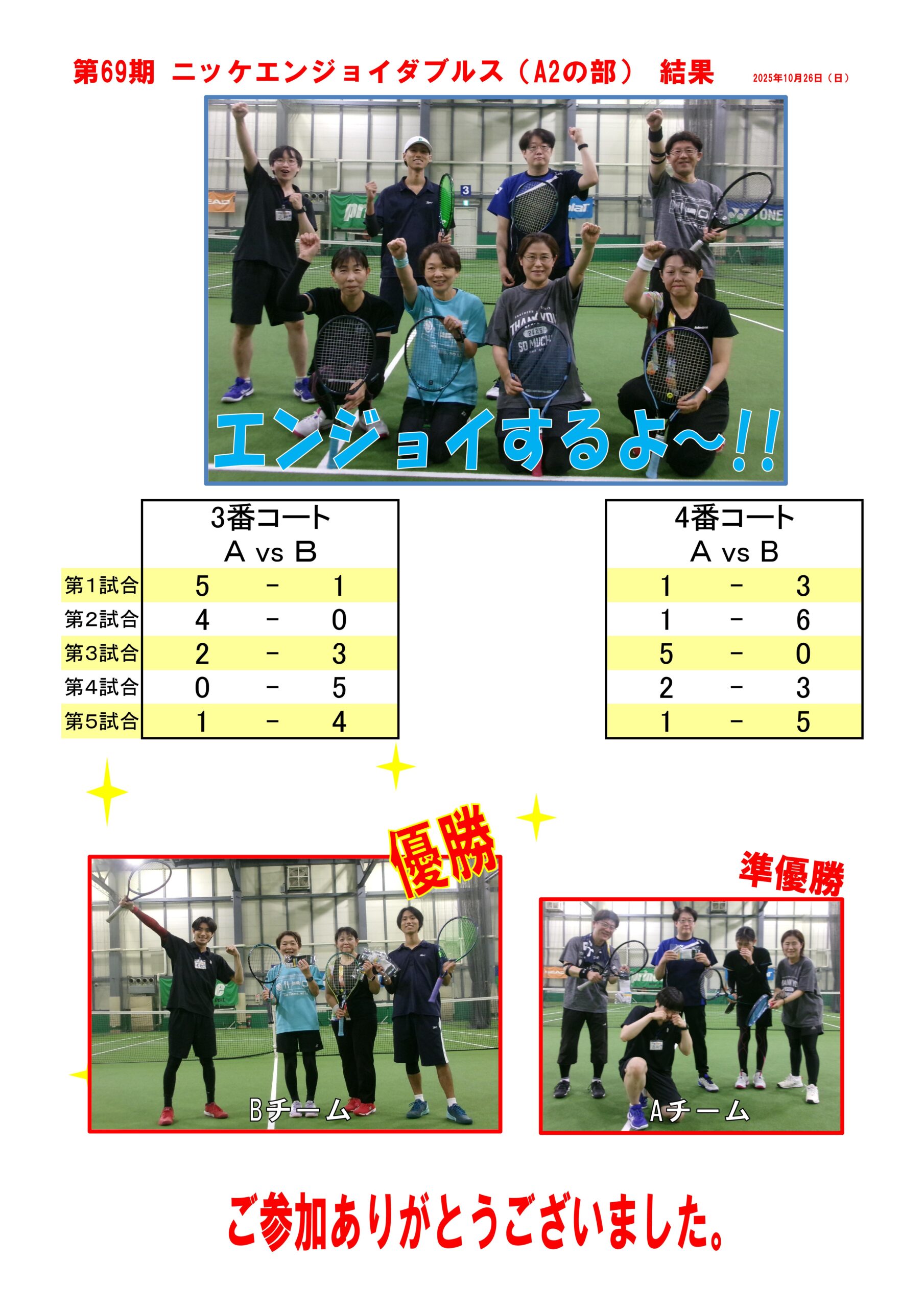 第69期 コーチとエンジョイダブルス A2の部 結果報告‼