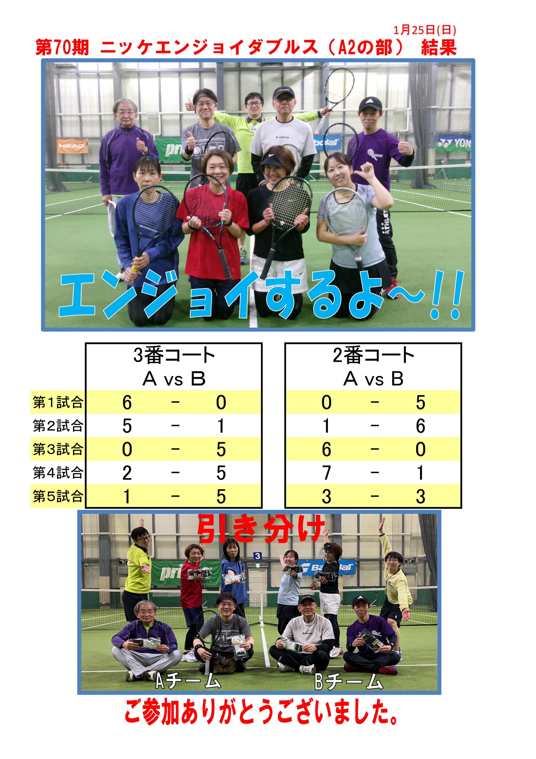 第70期 エンジョイダブルス A2の部 結果報告!!